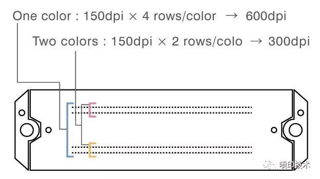 2.5pl drop size allows excellent print quality without graininess.With 1,280 nozzles configured in 4 x 150dpi rows, this head achieves high-resolution 600dpi printing. Additionally, the ink paths are isolated, enabling a single head to jet up to two ink colors.